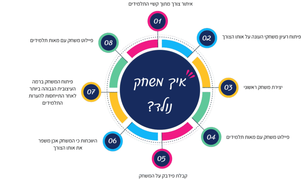 מאחורי כל אחד מהמשחקים הושקעה מחשבה רבה ותהליך ארוך. הרעיון נרקם מתוך צורך שראיתי אצל רבים מתלמידיי וניסיתי למצוא את הדרך היעילה ביותר לגשר עליו, חקרתי ולמדתי על מנת למצוא את המתודה המשחקית שתשרת באופן הטוב ביותר את מטרת המשחק ושילבתי בין שיטות שונות, שיחקנו, קיבלתי הארות והערות מתלמידיי, שיפצרתי בהתאם כדי לוודא שהמשחק אכן נותן את המענה הנדרש ואני יכולה להתחייב על גישור הפער. המשחקים נולדו מתוך ניסיון של שנים בהוראת האנגלית, ניסיון, טעייה והשתפרות ושימוש במתודות שמצליחות לעורר את הרצון ללמידה ואת חדוות היצירה.