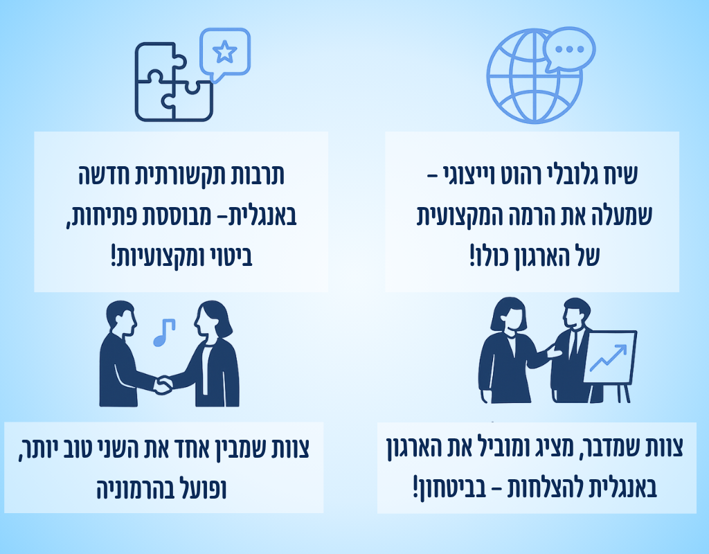 שמזניק עובדים ומנהלים ליכולת ביטוי אפקטיבית באנגלית המדוברת – אך לא רק.